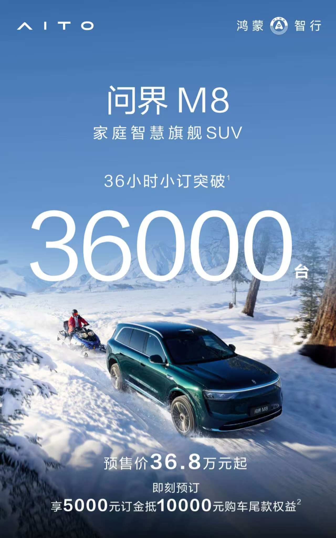 IT之家 3 月 7 日消息,根据鸿蒙智行今晚公布的最新数据,“家庭智慧旗舰 SUV”问界 M8 36 小时小订突破 3.6 万台、“全景智慧旗舰 SUV”问界 M9 36 小时小订突破 1.8 万台。