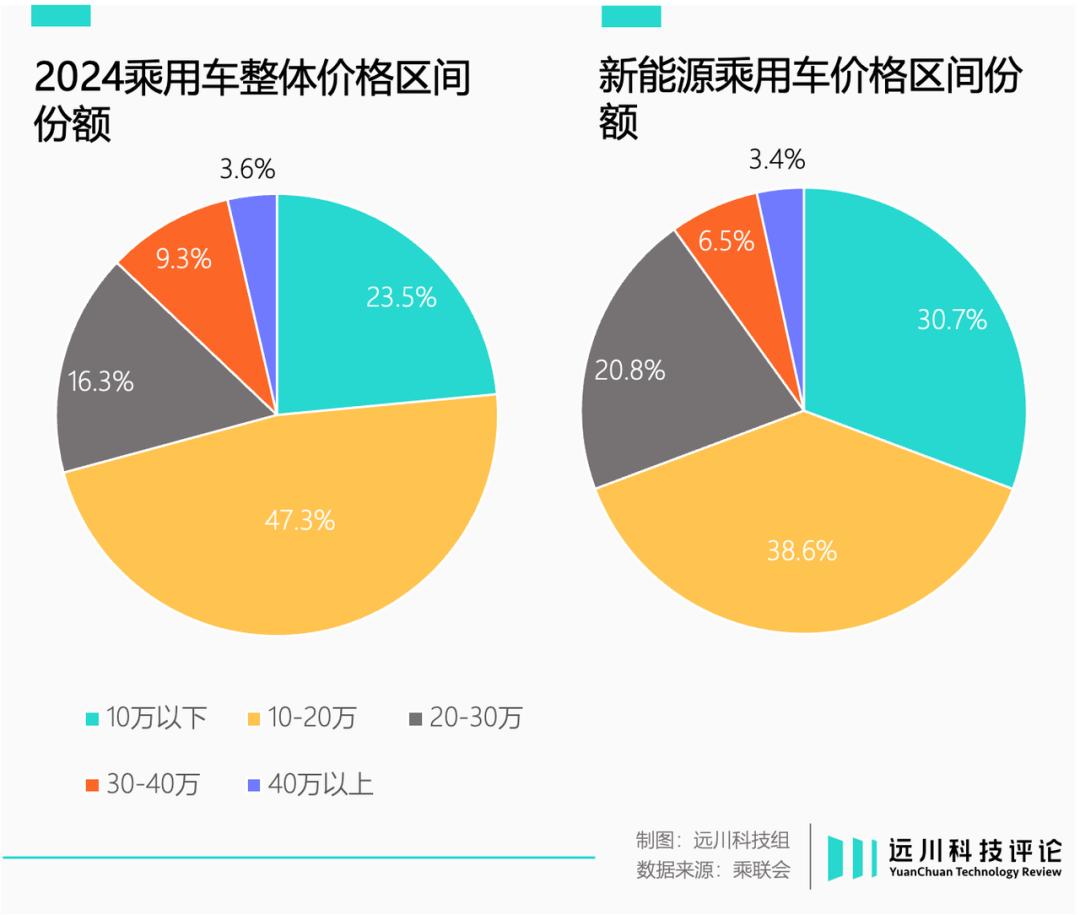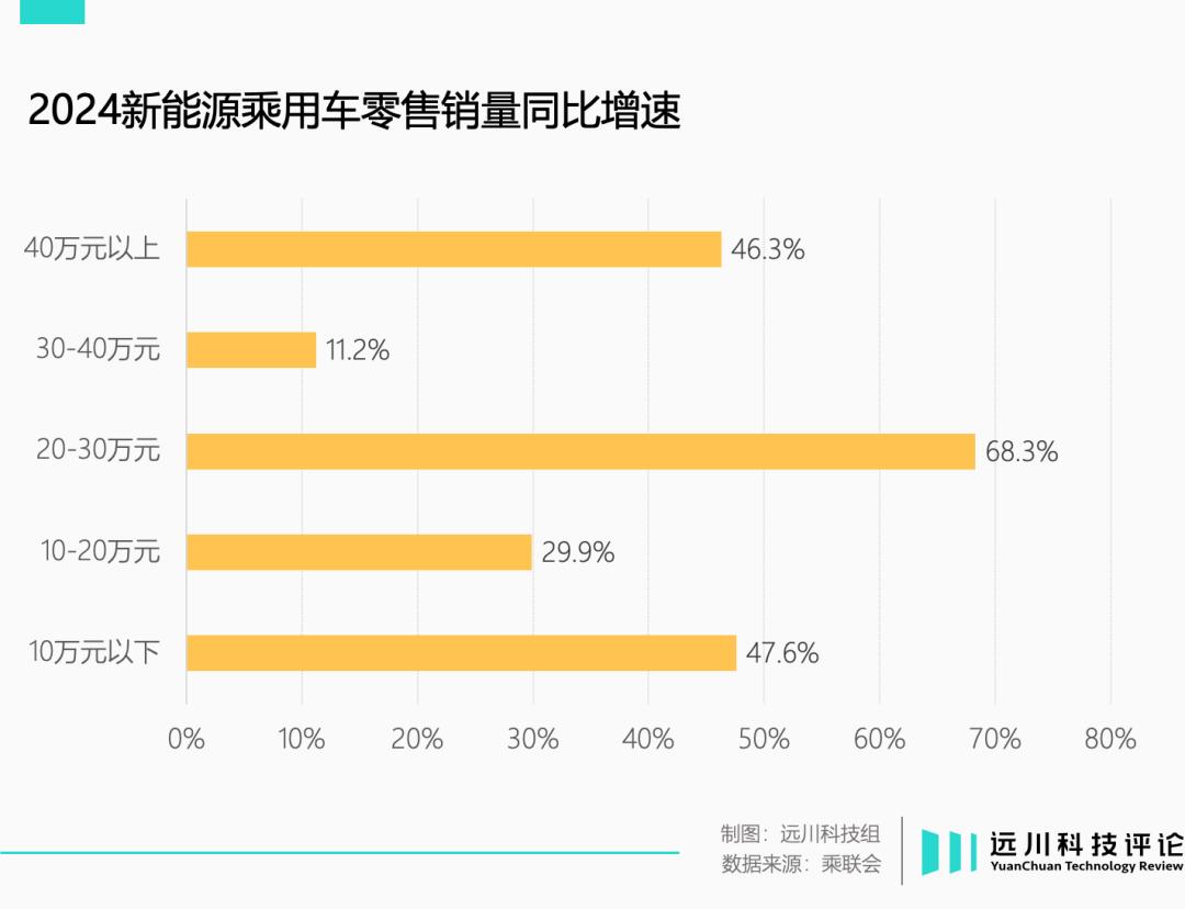 虽然价格战炮火连天,但汽车销售均价其实在不断提高。2024年,20-30万的市场增速大幅跑赢了大盘。另一方面,相比高端纯电车型只有蔚来一棵独苗,混动车型在高端市场的空间更大,也应该是比亚迪的优势领域。
