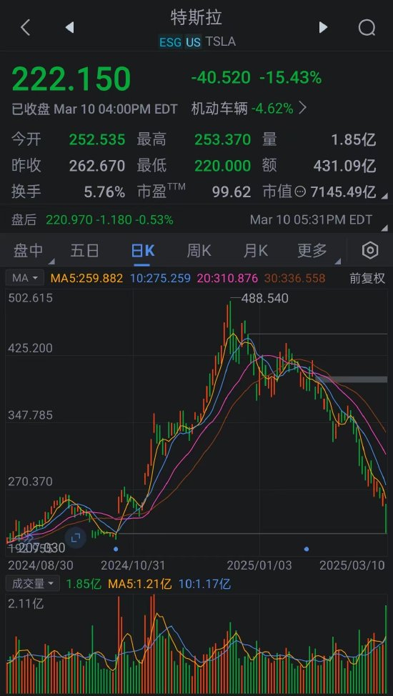 股价暴跌与销量下滑形成恶性循环。销量不佳让投资者对特斯拉未来业绩信心受挫,华尔街各大投行纷纷下调特斯拉目标价。美国银行因新车销量下降、低成本车型进展缓慢,将目标价从 490 美元下调至 380 美元;高盛考虑到中国市场自动驾驶系统的激烈竞争,将目标股价从 345 美元下调至 320 美元。瑞银更是预计特斯拉本季度交付量仅 36.7 万辆,较此前预测减少 16%,并预计全年销量同比下降约 5%。