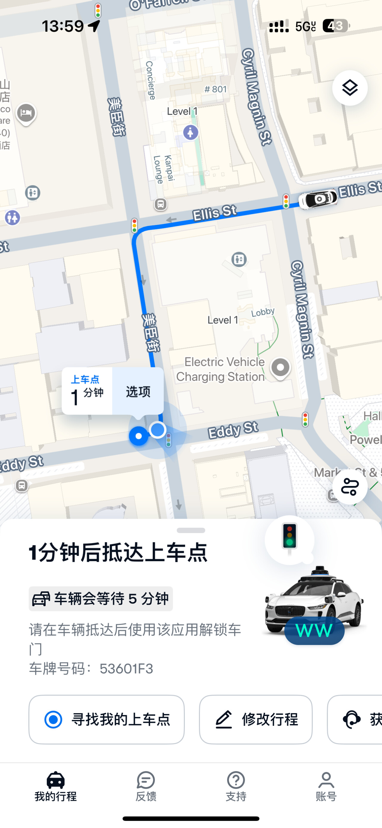在等车时,我可以在APP中查看车辆的实时位置、车牌信息等,车辆到达后需要在APP中选择“确认上车”后才能打开车门。