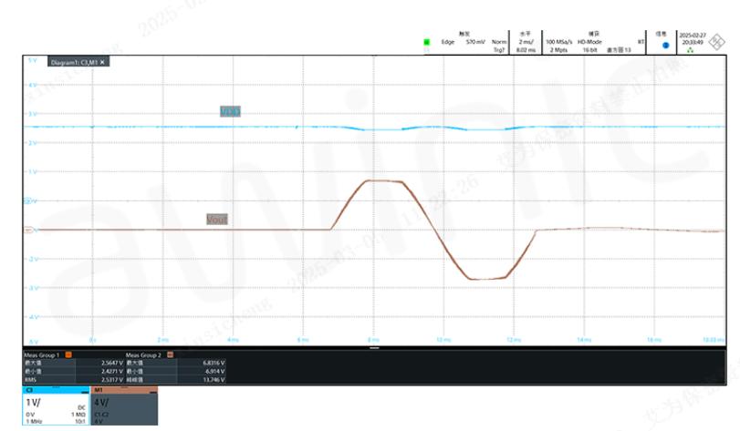 借助 LRA 模型对马达参数进行精准检测,依据检测结果运用算法将任意波形实现过驱,且可有效避免偏频波形过冲问题。另外,搭配 AAE 技术能够实现完美方形振动,进一步优化振动效果。下图分别是 120Hz、160Hz、200Hz 效果波形,前半段为原始加速度波形,后半段为处理后的效果。