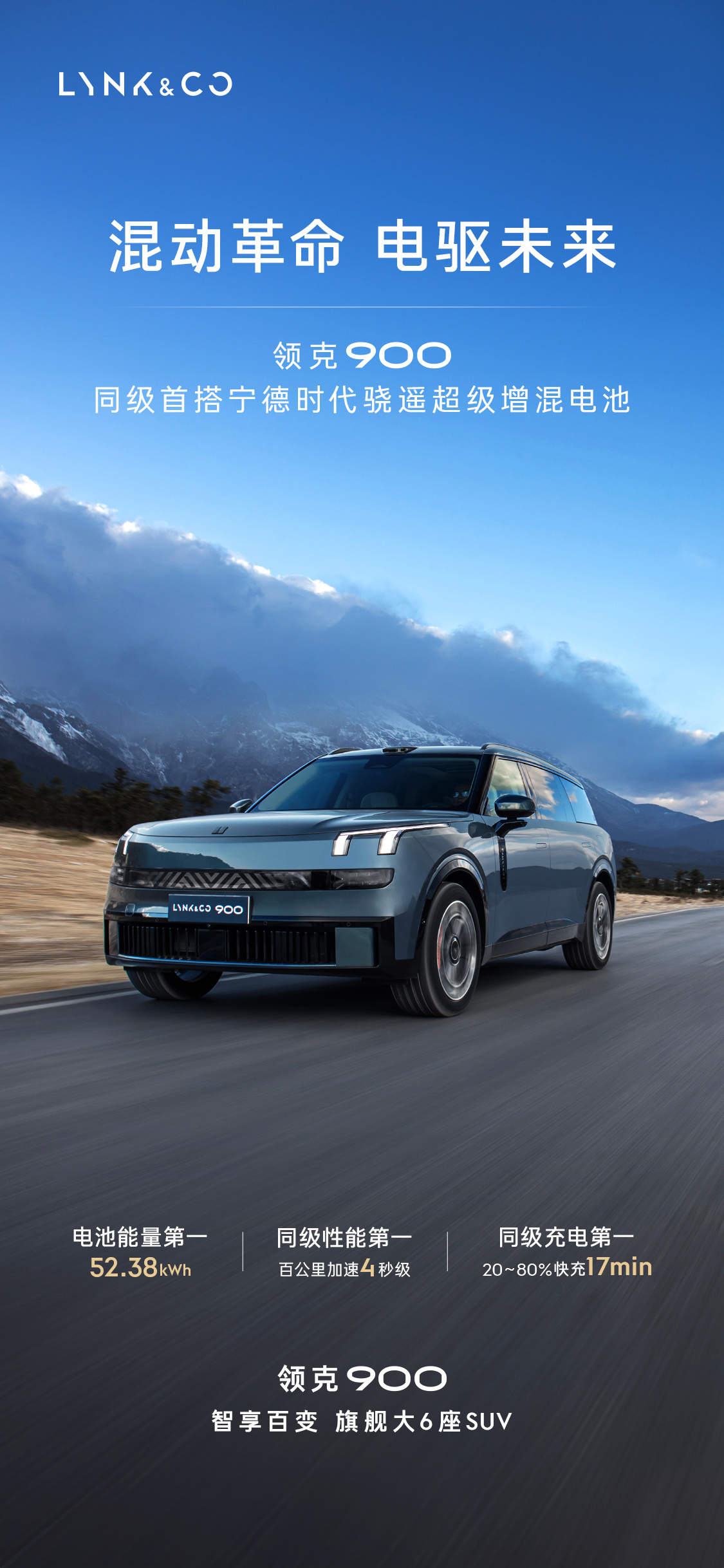 IT之家 3 月 12 日消息,领克汽车今日宣布,领克 900 同级首搭宁德时代骁遥超级增混电池,电池能量第一(52.38kWh),同级性能第一(百公里加速 4 秒级),同级充电第一(20~80% 快充 17min)。此外,该车的 CLTC 纯电续航达 280km,综合续航达到 1443km。