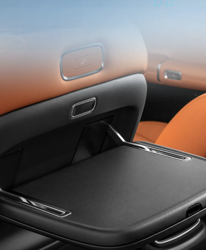 Q07 的后排小桌板长宽为 360*258mm,静态承重 35kg,可以满足学习。办公、就餐等需求,收起时和座椅融为一体。Q07 的天幕总面积为 2.25㎡,采光面积 1.2㎡,紫外线隔绝率 99%。