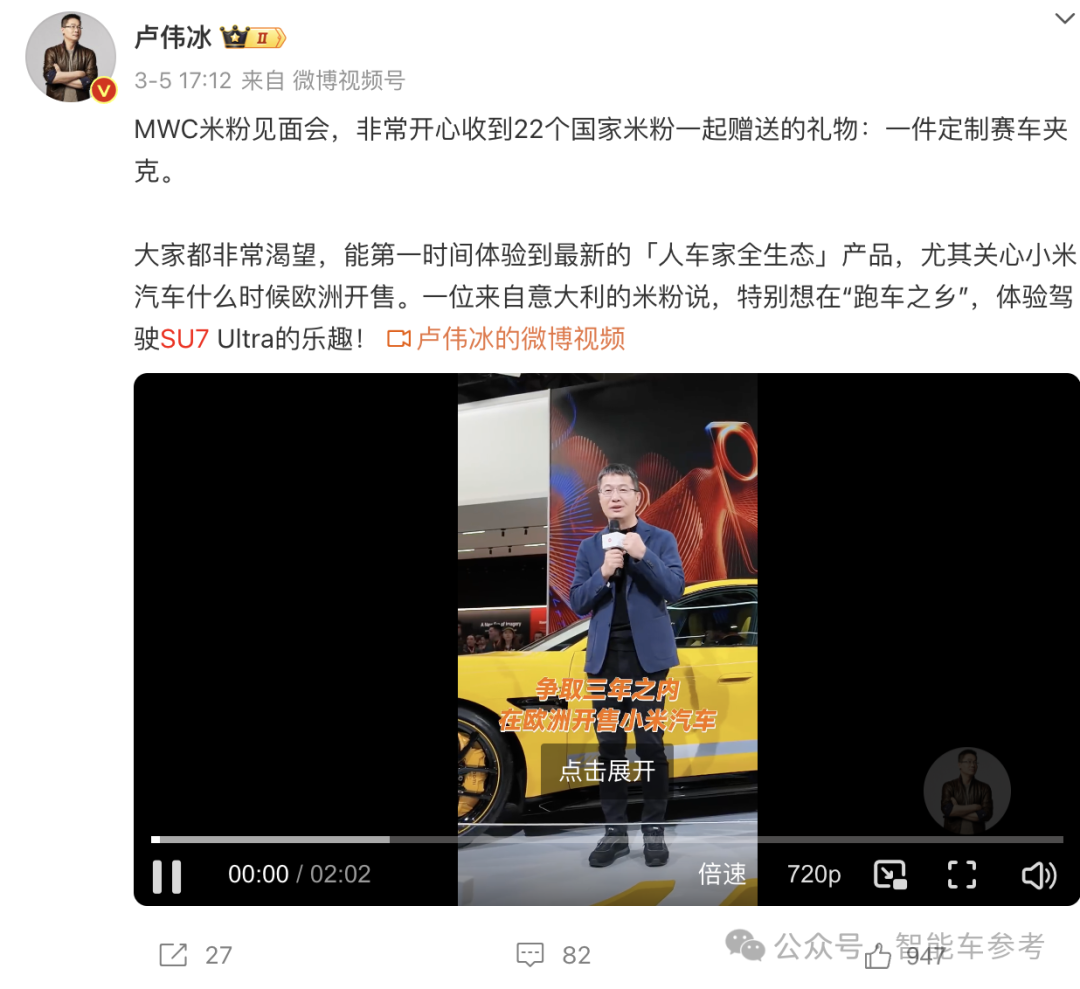 除此外,小米汽车最近还在海外盛会上亮相,透露了出海规划。