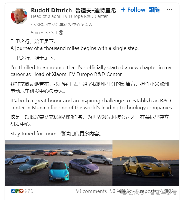 与此同时,小米汽车海外研发中心也浮出水面,落子德国汽车工业重镇,慕尼黑。