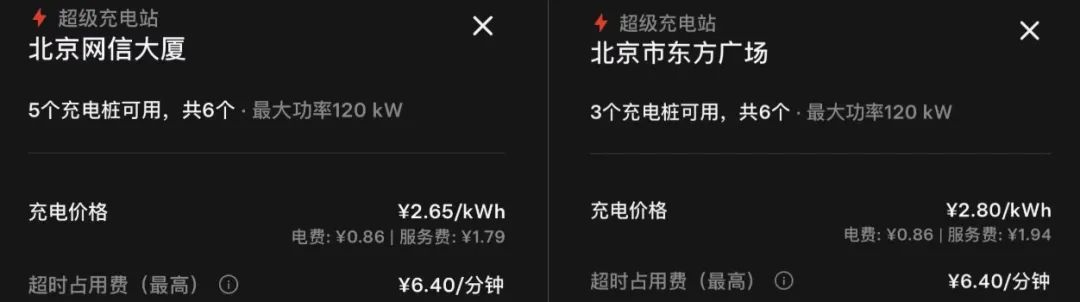 一位特斯拉销售人员告诉记者:“特斯拉充电桩的服务费通常不超过电费的20%,但不同地段也会有区别。例如,在人流量大的商圈,服务费会更高。”记者通过特斯拉APP发现,位于北京二环与三环附近的特斯拉充电桩,其充电价格因地段不同而有所差异。其中,三环附近的特斯拉超级充电站,充电价格为2.65元/kWh,其中电费0.86元/度,服务费1.79元/度;二环附近的充电价格更贵,达到2.80元/kWh,电费不变,但服务费涨到1.94元/度。