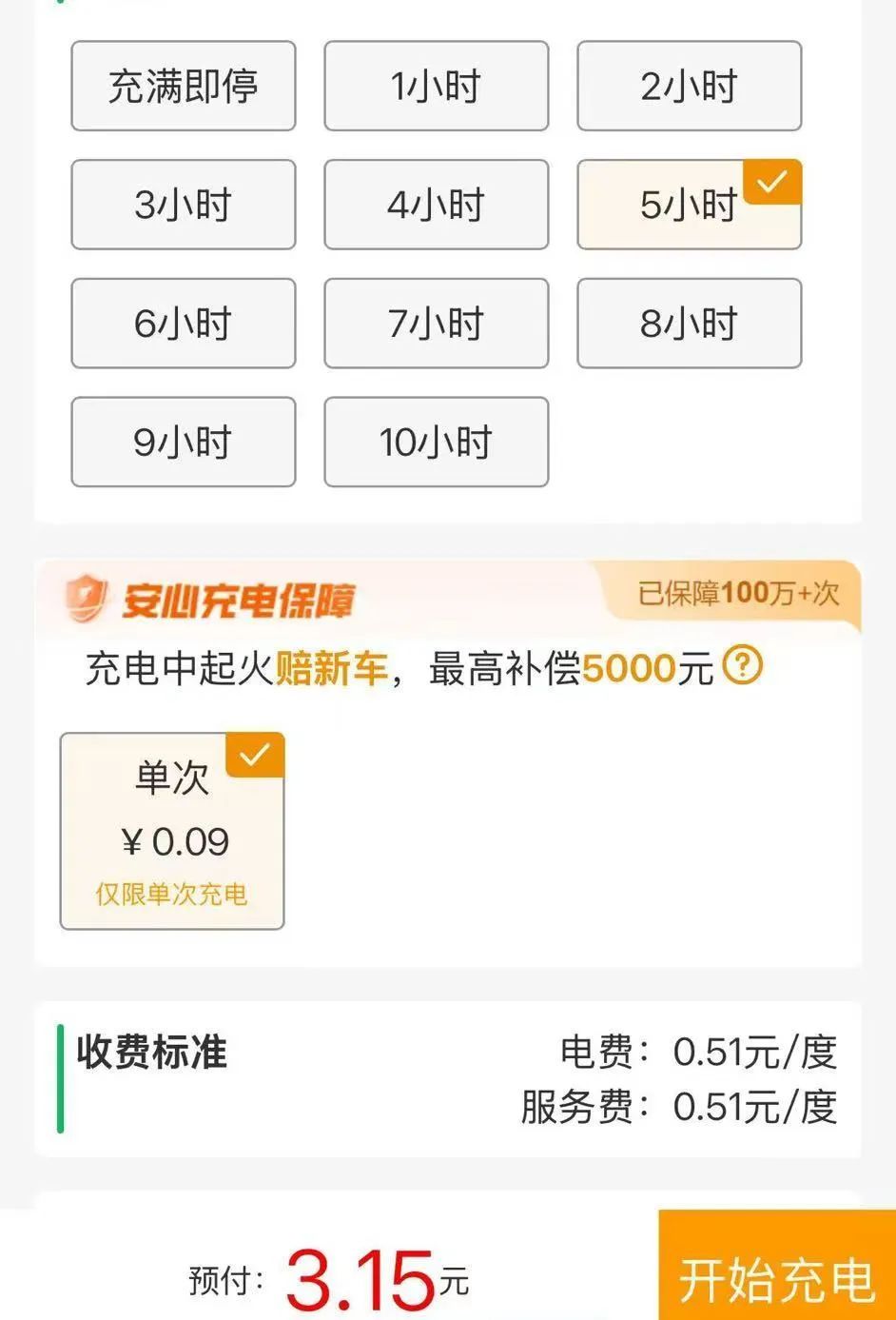 而同小区内,距离不到3米外有名为“君正智能车库”的电动自行车充电桩,记者对比发现,同样是按时长计费,该充电设备的收费标准却与上述充电设备完全不同。记者扫码后,其使用指南显示,用户可以选择充满后再付费的“充满自停”方式,也可以选择2小时、3小时等固定充电时间,限制功率0.6千瓦,在同样选择充电5小时的预付费用则为3.15元。