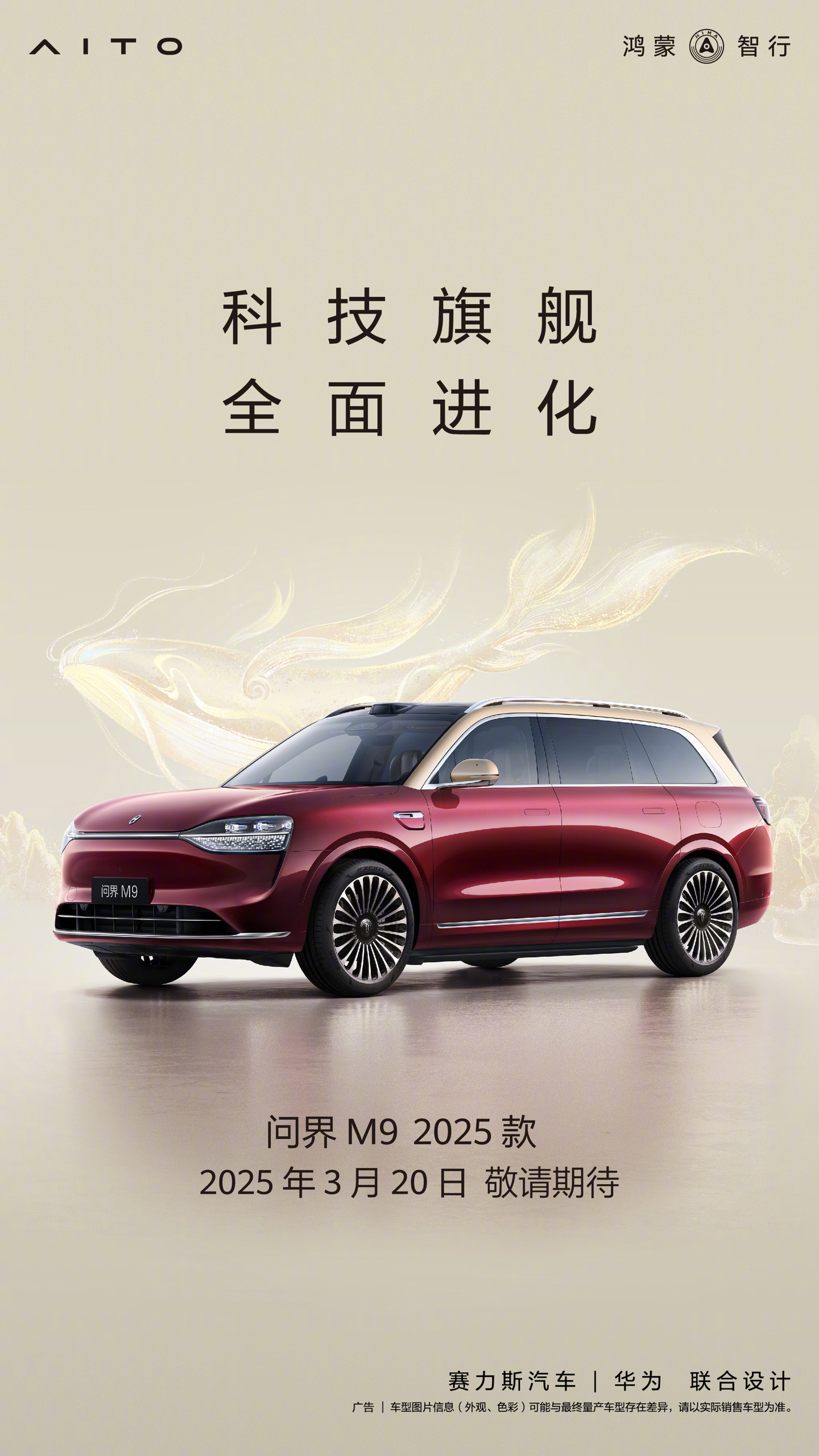 IT之家 3 月 13 日消息,鸿蒙智行官方微博今日宣布,问界 M9 2025 款“全景智慧旗舰 SUV”汽车将在 3 月 20 日亮相。