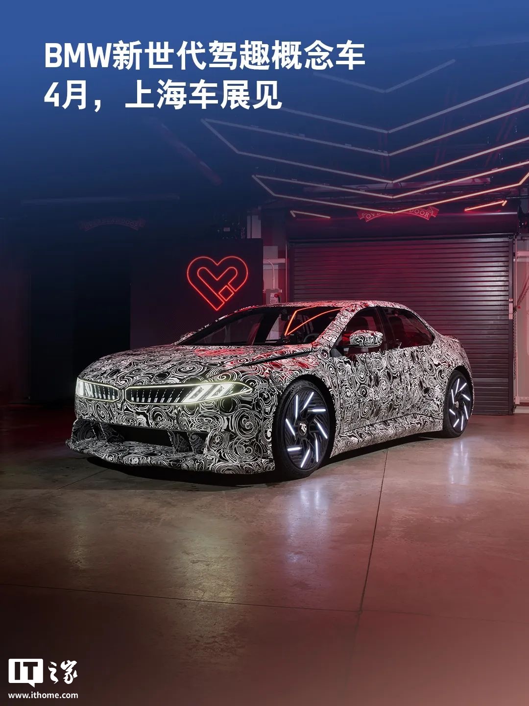 BMW 新世代驾趣概念车将在 2025 上海国际车展亮相(4 月 25 日至 5 月 2 日),官方今日发布了新车的伪装照。