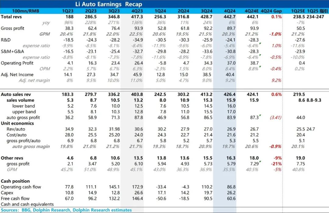 而从毛利率预期来看,在下滑如此严重的单价预期上,市场会很担心理想1Q25的毛利率预期,而市场在财报前的最新汽车毛利率预期还有20.1%,预计一季度下行风险很大。
