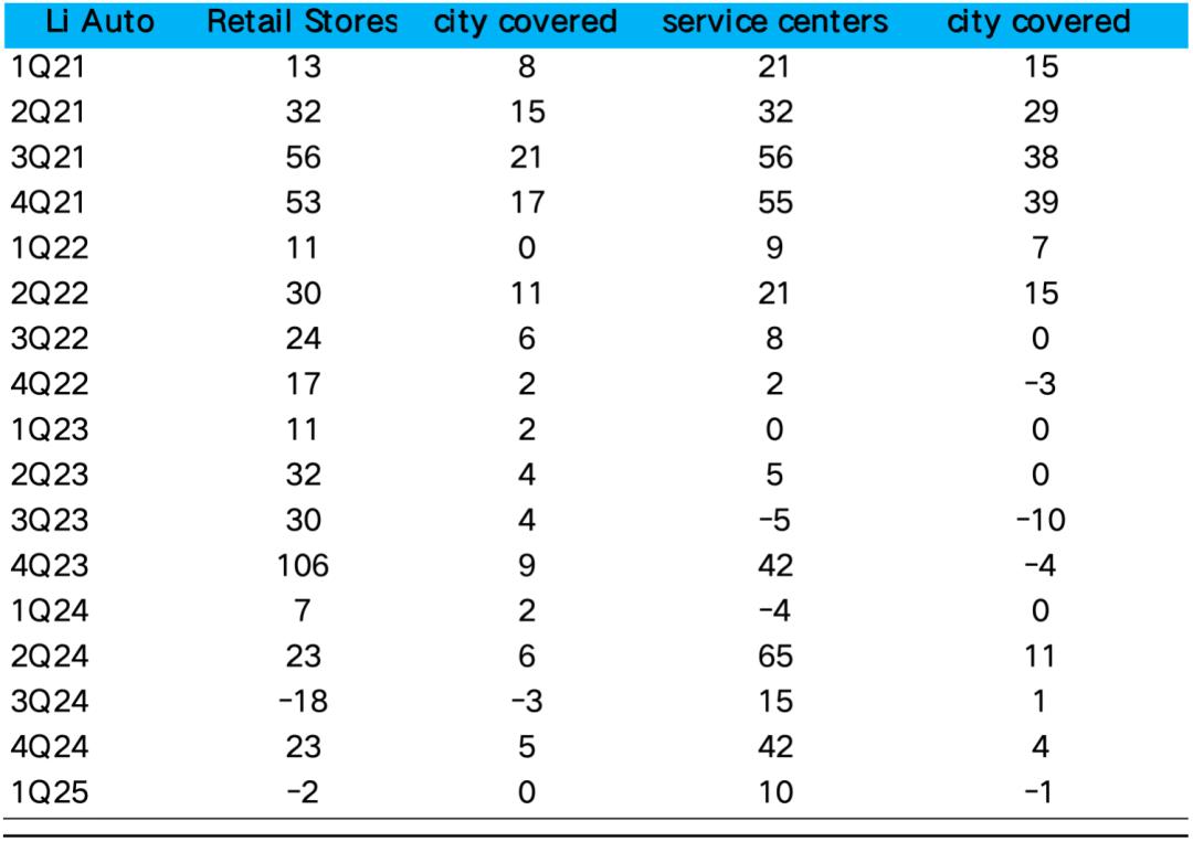 而在渠道建设上,理想四季度在继续做渠道拓展,门店数量和服务中心数量都在继续加快,但覆盖城市方面似乎渠道下 沉的不够快(四季度仅新覆盖了4个城市),而L6车型的较低定价导致的核心用户可能在二三线城市的比例较高。