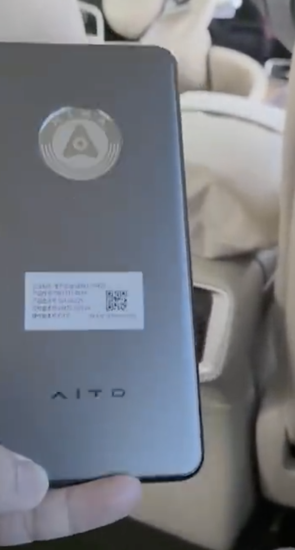 从图中可以看到,其设计类似手机,采用全面屏,背部印有鸿蒙智行和AITO标识。