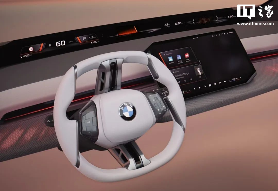 IT之家注意到,宝马新世代车型的方向盘功能岛采用了左侧驾驶域、右侧生活域的双区布局。左侧为驾驶辅助功能区,集成自动泊车等核心驾驶辅助控制功能;右侧生活域则支持音乐切换、智能语音、接打电话等车辆基础交互操作。宝马依然保留了物理按键,因为在极限驾控状态下,物理按键能够减少驾驶分心,增强驾驶安全。