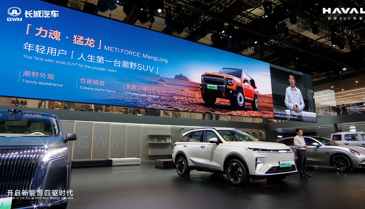 哈弗今日在车展上展示了二代哈弗枭龙 MAX、哈弗猛龙车型。二代哈弗枭龙 MAX 于 4 月 16 日刚刚上市,定价 13.18 万元起,限时换新价 11.68 万元起,全系搭载第二代 Hi4 四驱插混技术。