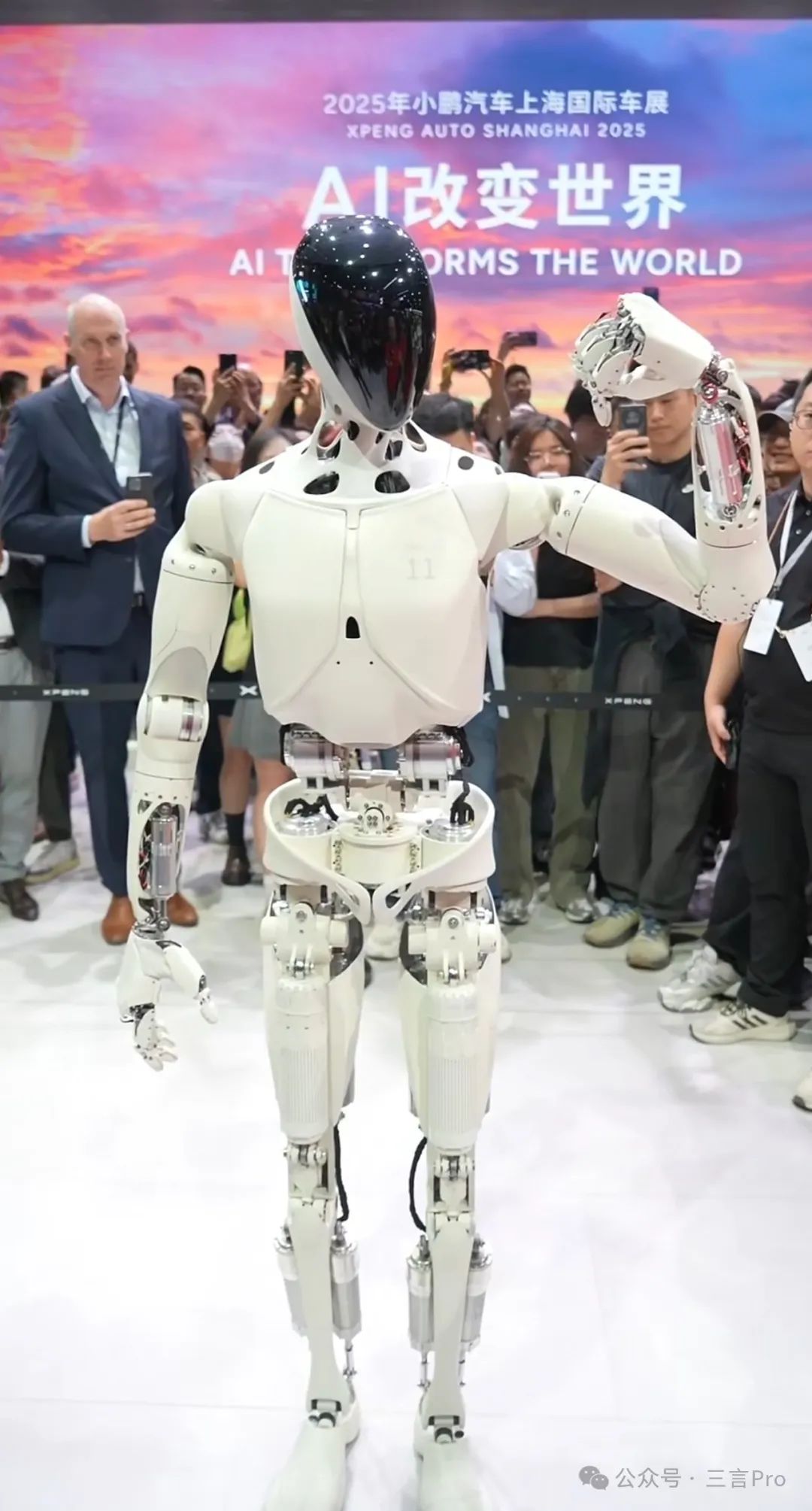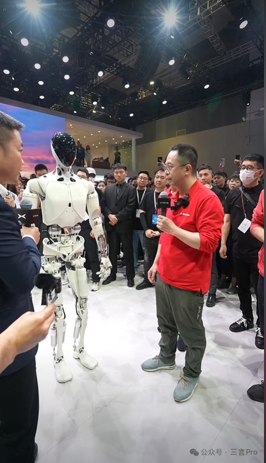 今日,小鹏人形机器人Iron是首次亮相,展台 围满人,与小米展台热闹程度相当。