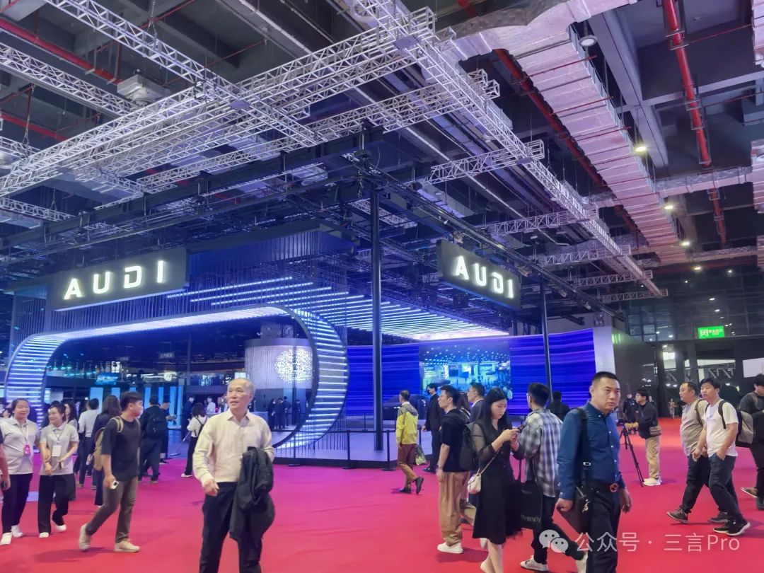 早上9点左右,三言从车展3号门进入,门口上方是奥迪硕大的广告,一整面都是,被奥迪承包了。