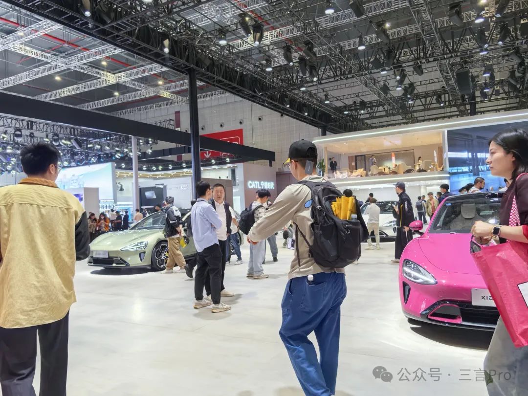 除了小米、小鹏这几个热闹展台外,三言也去了其他新能源车企的展台。