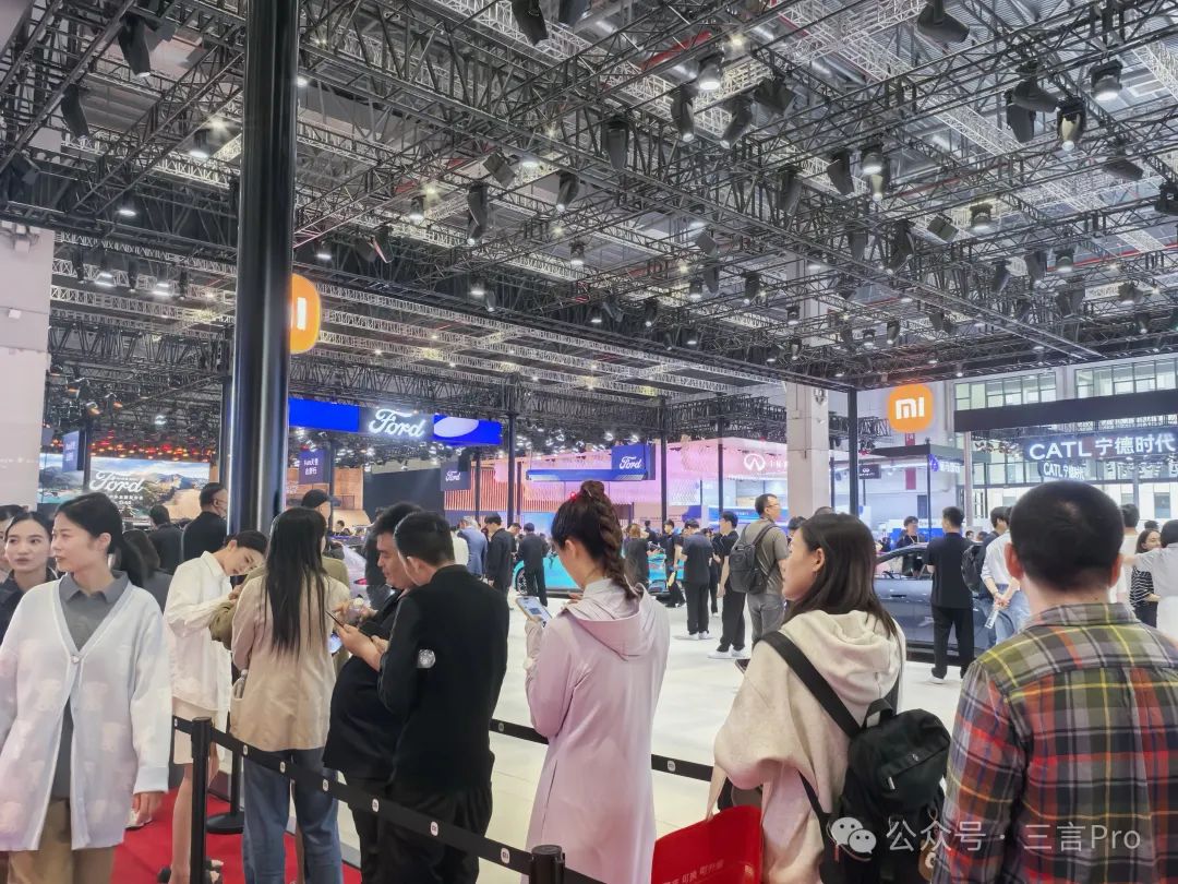 三言在车展现场看到,小米汽车展台排起了长队,足足绕了展台2圈多,工作人员说现在排起码得排半小时。