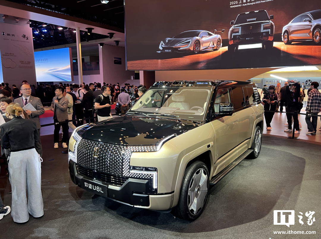 比如仰望 U8L,在车展正式亮相,作为 U8 的加长版,其三维更为夸张,长 5400mm、宽 2049mm、高 1921mm,轴距达到 3250mm。