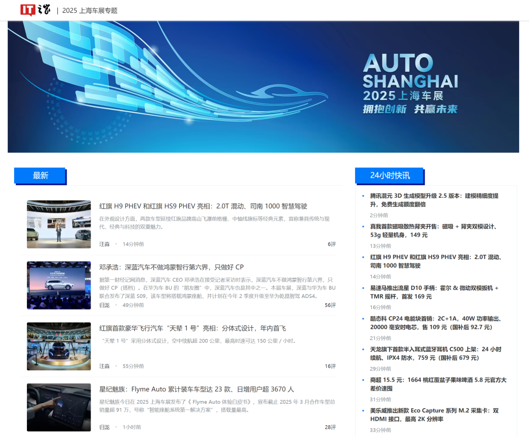 毕竟亮相的新车实在太多,无法全部讲述,对车展感兴趣的朋友,可以前往IT之家“2025 上海车展专题”中查看,资讯应有尽有。