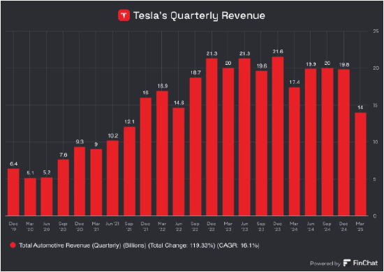 但就在马斯克政治权势通天的同时,他商业帝国最重要的版图特斯拉却陷入了多年来的最低谷。刚刚发布的特斯拉第一季度财报,用水深火热来形容并不夸张:净利润同比暴跌71%,汽车销售收入下滑20%,总收入下滑9%。