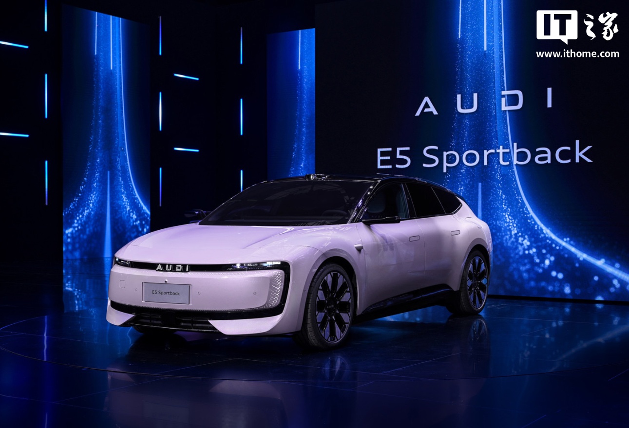 AUDI 品牌首款量产车型 —— AUDI E5 Sportback 正式亮相 2025 上海车展,IT之家带来现场实拍图如下: