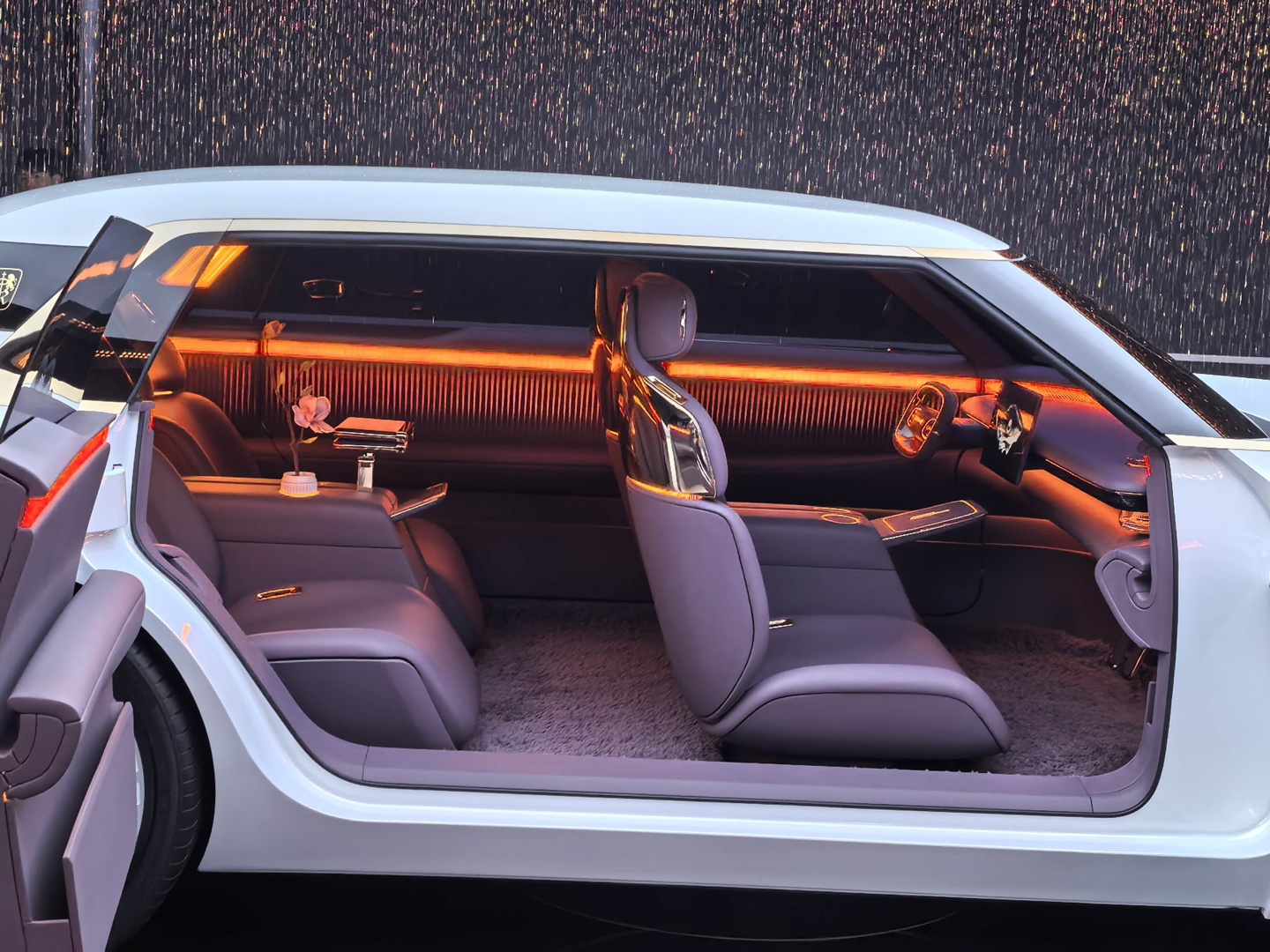 从网上流出的内饰实拍图,上汽荣威“明珠”概念车采用四座布局,同样十分简洁,后排还带有类似折叠小桌板的配置。