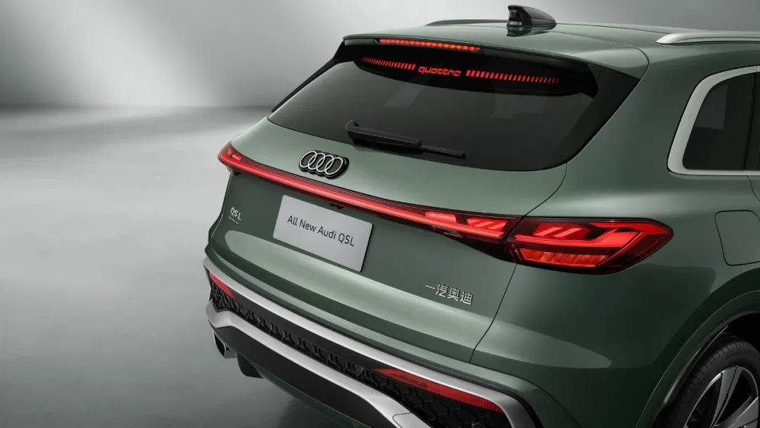 在车灯方面,全新奥迪 Q5L 配备了星辰矩阵大灯和数字日间行车灯,可定制 8 种不同的灯光图案,尾灯采用第二代数字 OLED 技术,每一个像素都可以独立控制,同样可实现 8 种个性化数字签名,与前灯呼应。同时尾灯还搭载了全新的安全技术,在后车快速接近时,尾灯会自动显示三角形警告标志;中国版的奥迪 Q5L 还独占了专属的 quattro 高位刹车灯。