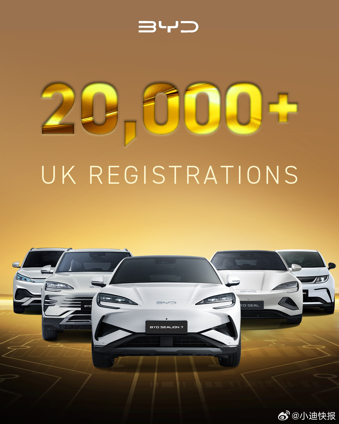IT之家 4 月 25 日消息,博主 @小迪快报 今日发布的消息称,比亚迪在英国市场的销量已经突破 20000 辆。据其介绍,销售第 1 辆到第 10000 辆,用时 19 个月;而从 10000 到 20000 辆,只用了 5 个月。另外,比亚迪 3 月在英国销售 6480 辆,1 季度 9271 辆。