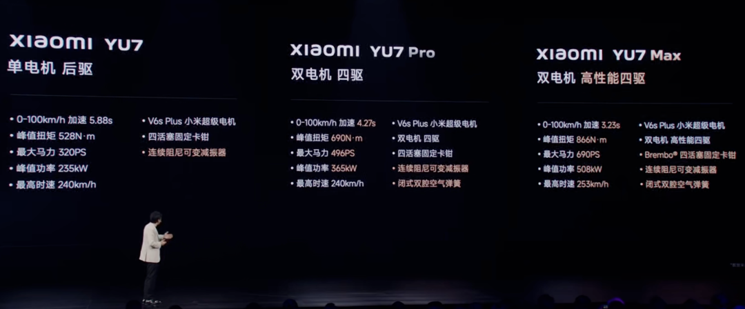 性能强的同时,雷总还强调了YU7的刹车表现,全系标配了固定卡钳和四重冗余刹车安全系统,时速100km/h下的刹停距离为33.9米。