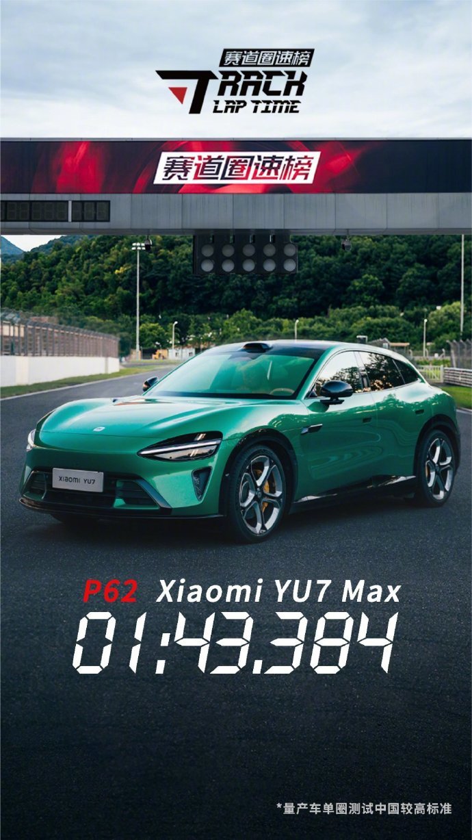 凤凰网科技讯 10月7日,小米CEO雷军公布YU7 Max浙赛圈速表现:01:43,384,暂列榜单第62位,并表示一辆SUV有这样的成绩是不是还不错?
