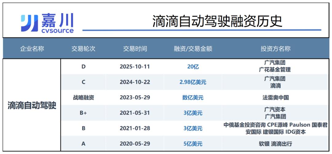 根据公告,滴滴自动驾驶的20亿元D轮融资,主要由广汽集团和广州、北京两地国资参与。