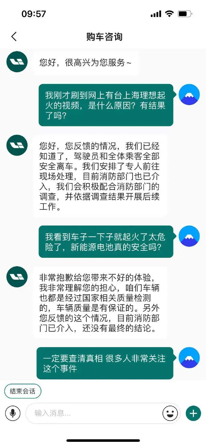 该事件还有一个小插曲。据《南方网》报道,该起火事故车主称理想工作人员曾频繁联系她,并强调“法务很厉害”。