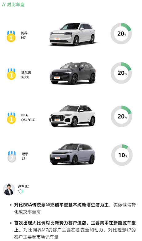 至于吸引到了不少问界 M7、理想 L7 的客户,也说明还是得放下豪华品牌的架子。现在竞争那么激烈,只有车型的竞争力上去了,才配谈品牌价值。