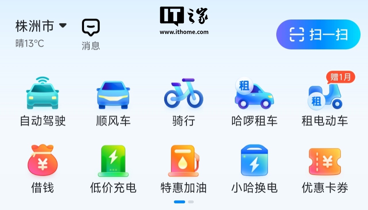 IT之家测试发现,哈啰 App 定位设置为株洲市后,依然会显示“自动驾驶”入口,不过点击进入后提示“不在运营区域”。