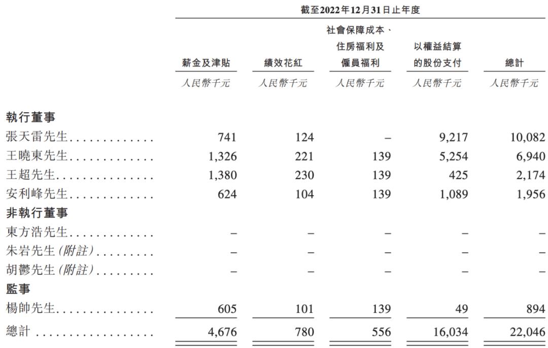 叠加工资、绩效花红等后,张天雷的薪酬相对较高。其中,2022年为甚。当年张天雷2022年薪酬总计1008.2万元,王晓东、王超、安利峰分别取得薪酬总计694.0万元、217.4万元和195.6万元。