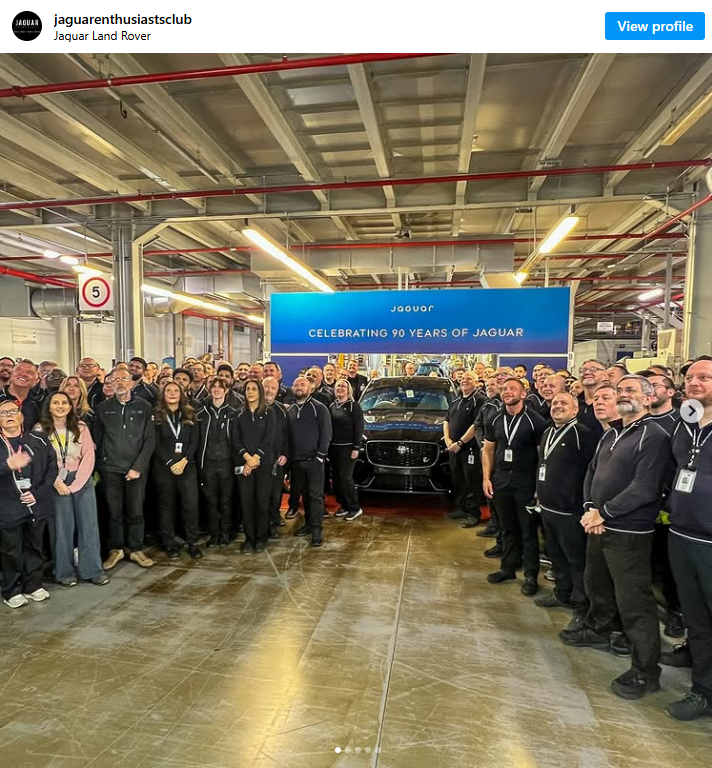 由于捷豹的发展战略目前仍处于混乱无序的状态,最终是捷豹爱好者俱乐部亲历了这场收官仪式,并承担起了消息传递的责任。据该俱乐部透露,下线的最后一辆车型是黑色的 F-Pace SVR,选择这一颜色是为了致敬末代 E-Type 车型,后者曾“标志着捷豹另一个辉煌时代的终结”。
