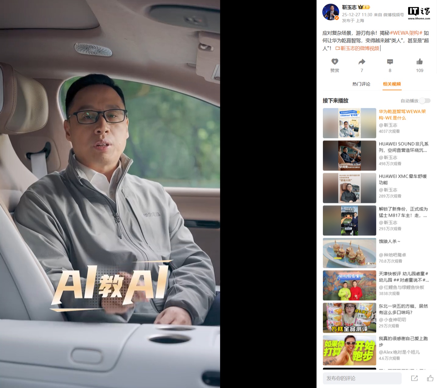 IT之家 12 月 28 日消息,华为智能汽车解决方案 BU CEO 靳玉志昨日发布视频,详细介绍了华为乾崑智驾的 WEWA 架构,称这是一个面向未来自动驾驶而开发的全新技术架构,包括两个核心部分: