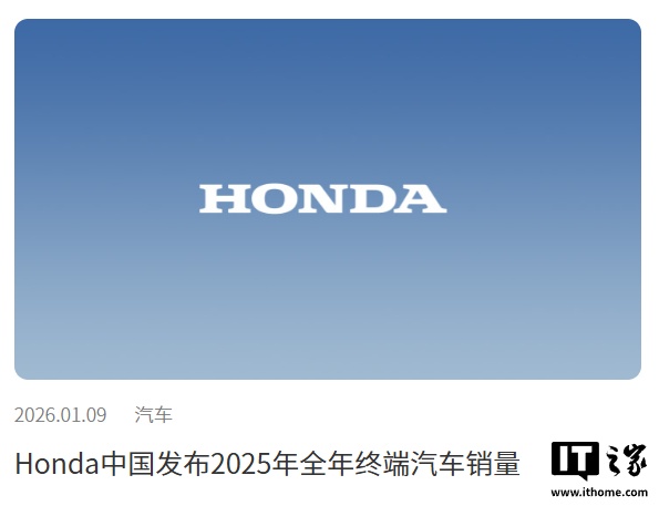 IT之家 1 月 9 日消息,本田中国今日发布 2025 年全年在中国的终端汽车销量。