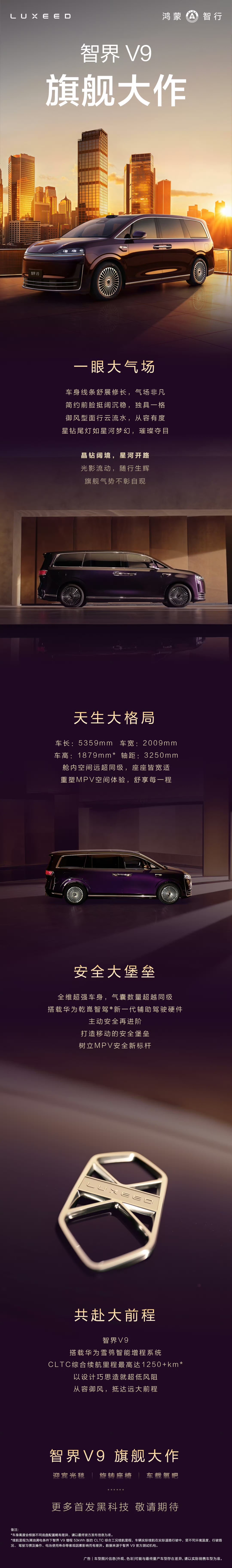 IT之家 1 月 9 日消息,鸿蒙智行正持续预热旗下首款 MPV 车型 —— 智界 V9,今天午间,官方公布了新车的部分亮点信息。