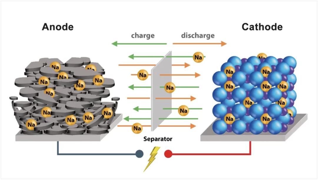 充电时,电池内部的钠离子从正极脱出嵌入负极;放电时,钠离子从负极脱出返回正极。这种金属离子在两极之间穿梭摇摆的电池,也被形象称为“摇椅式电池”。