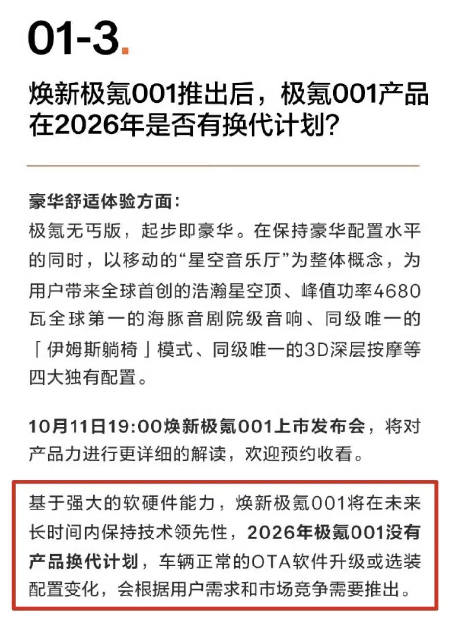 极氪官方明确表示 26 年 001 没有改款计划
