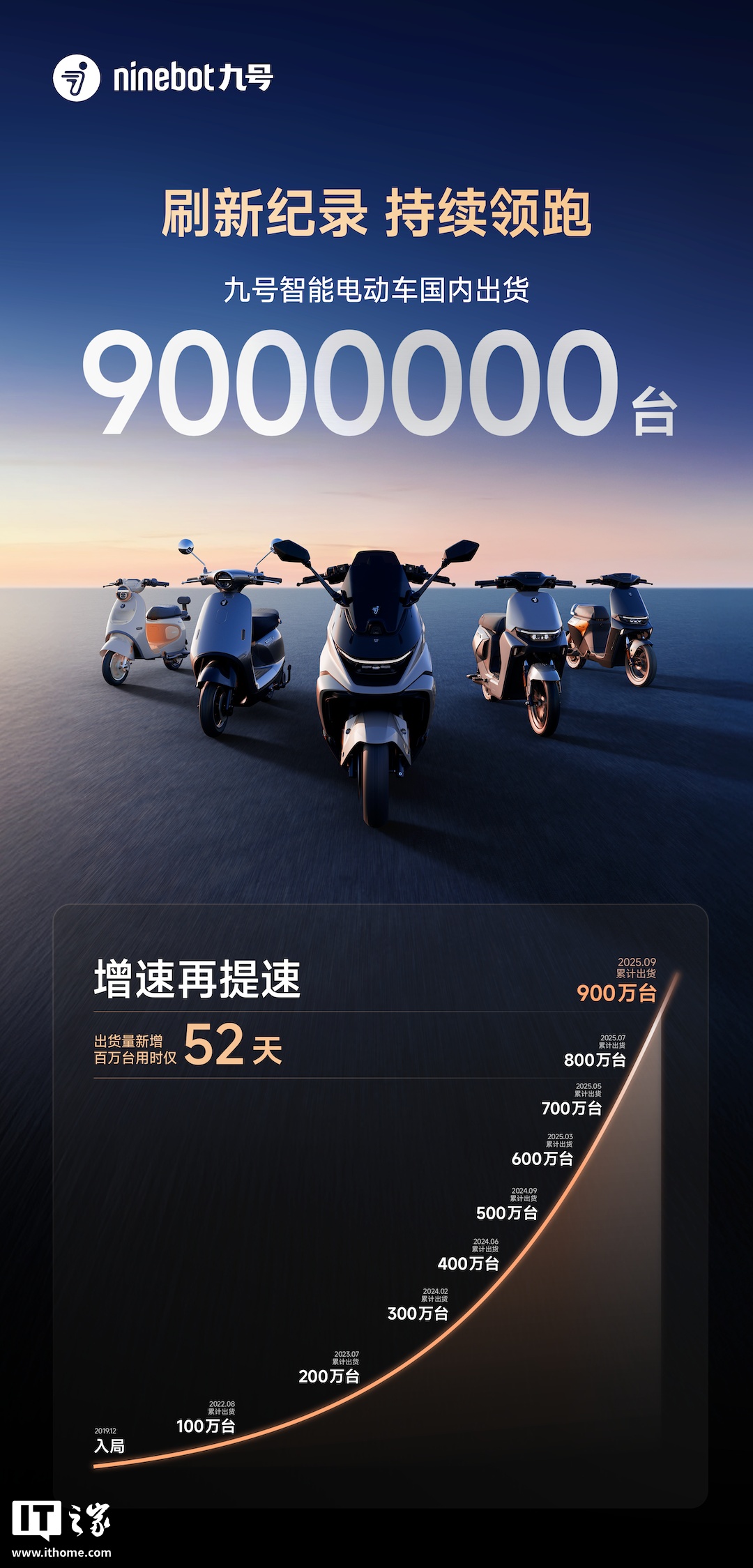 《九号公司 2026 年新品将全系标配智驾系统,中国市场累计出货量超 900 万台》