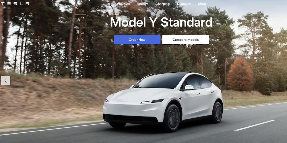 ▲特斯拉中国官网短暂上线标准版Model Y页面(图源网络)