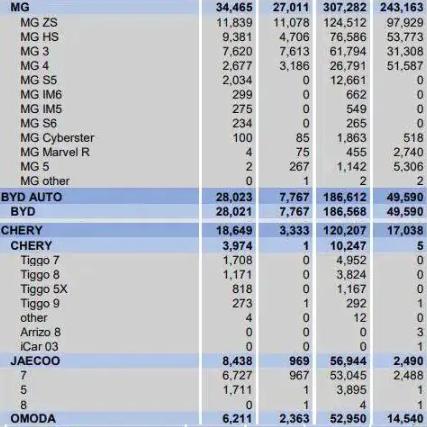 奇瑞旗下Jaecoo和Omoda品牌分别占据第三、四位,前者销量56944辆,略高于后者的52950辆。奇瑞旗下所有品牌2025年在欧洲的销量共计达12万辆,大幅高于2024年1.7万辆。
