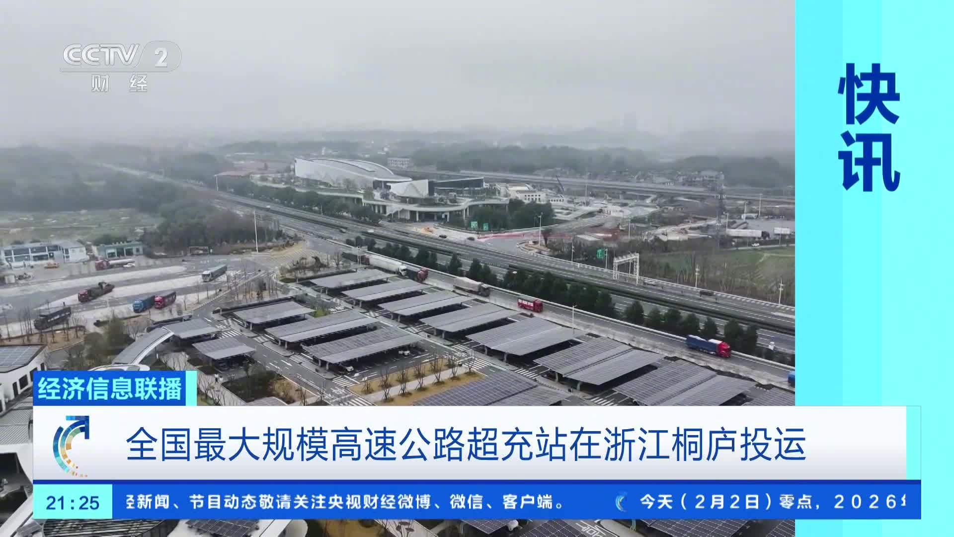 IT之家 2 月 2 日消息,据央视财经报道,全国规模最大的高速公路智慧超充站 ——G25 长深高速浙江杭州桐庐服务区光储充一体化超充站,今天全面建成并正式投运。这座拥有 216 个智能充电车位的“超级充电宝”,单日最高可满足超过 6000 车次的充电需求。