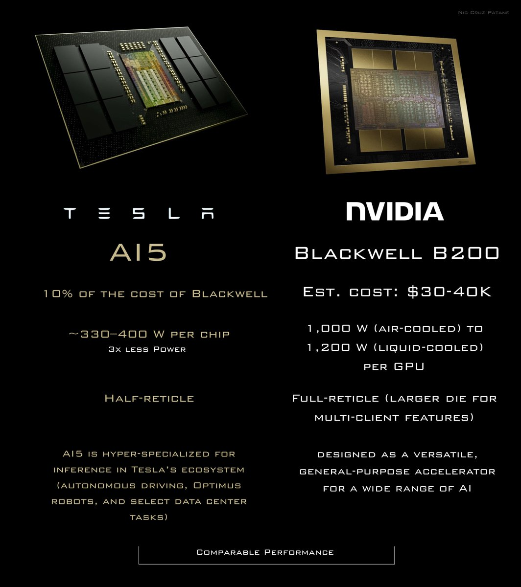 更关键的是,AI5的设计取向并不是极致高算力,而是成本和功耗。