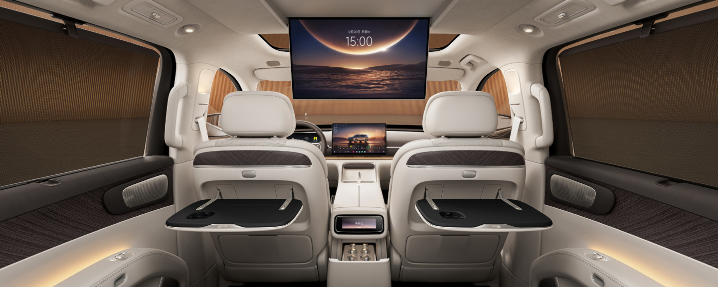 配置方面,官方宣称该车为全球最长纯电续航增程 MPV,行业领先 800V 高压增程平台、行业首发增程 CTC 电池底盘一体化、行业首发双能电机四驱增程、行业首发 80.3kWh 大电池增程。此外,该车还提供纯电版本,配备同级领先全栈 1000V 三电系统、行业首发宁德时代 115kWh 超级混合电芯。