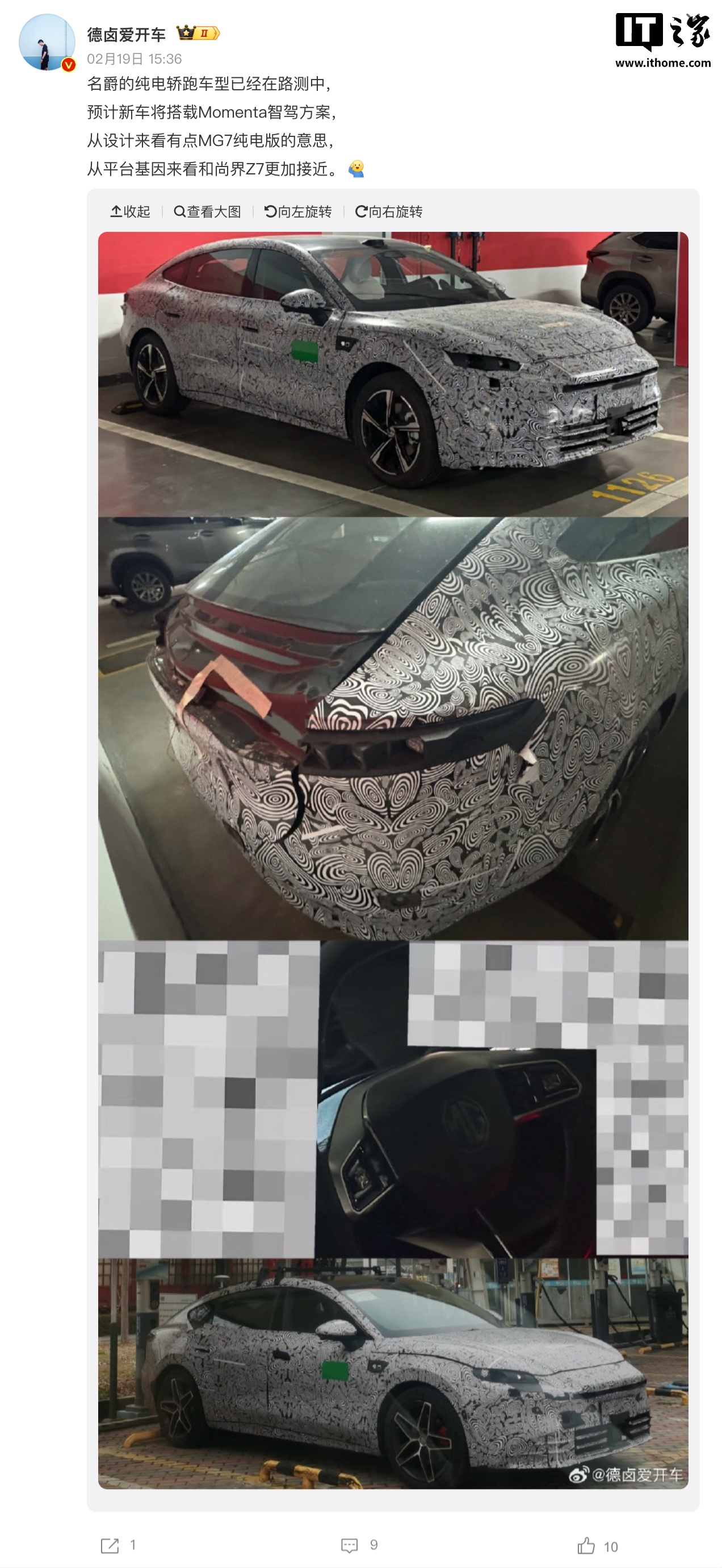 IT之家 2 月 25 日消息,博主 @德卤爱开车 日前晒出一组上汽名爵全新轿车的谍照。新车外观富有运动气息,侧面的线条流畅,采用溜背式设计,并配有车顶激光雷达、半隐藏门把手。他表示,新车预计搭载 Momenta 智驾方案,从平台基因来看“和尚界 Z7 更加接近”。
