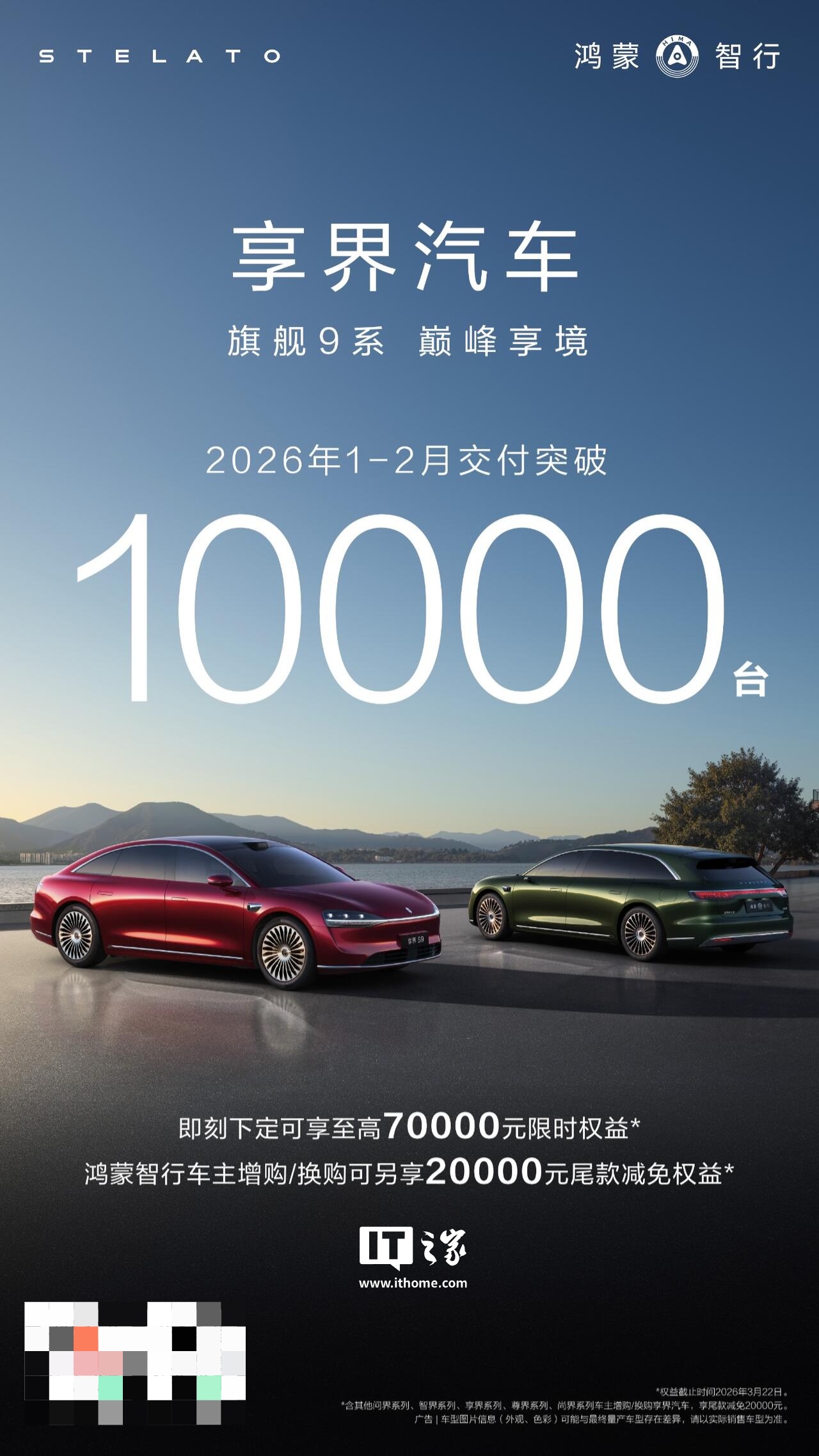 IT之家 3 月 3 日消息,鸿蒙智行官方公布了享界汽车的交付情况:2 月交付 4,627 台,2026 年 1-2 月累计交付突破 10,000 台,宣称“再创巅峰”。